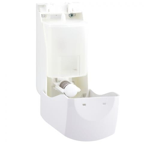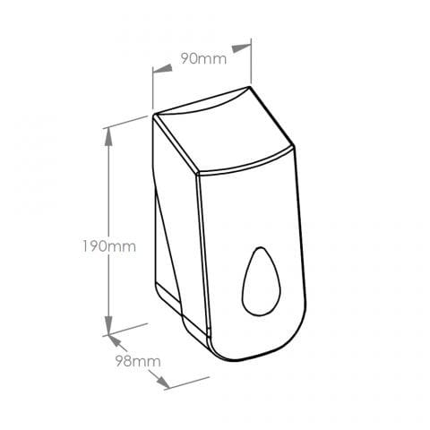 Opis – pojemność zbiornika 400 ml – mydło uzupełniane z kanistra – pokrywa przednia jest przyciskiem, co umożliwia dozowanie łokciem, bez użycia dłoni – wykonany z wysokiej jakości tworzywa ABS – dostępny w kolorze białym – kolor okienka do kontroli poziomu mydła: szary – zamykany na kluczyk Pasujące mydła: M2B, M2C, M2N, M2R, M3T, M3ZA, M3Z, M3X, M4A, M4, M8A, M8, M5, M6A, M6, M7L, M7S, M7B Parametry techniczne wysokość 19 cm szerokość 9 cm głębokość 9,8 cm pojemność zbiornika 400 ml