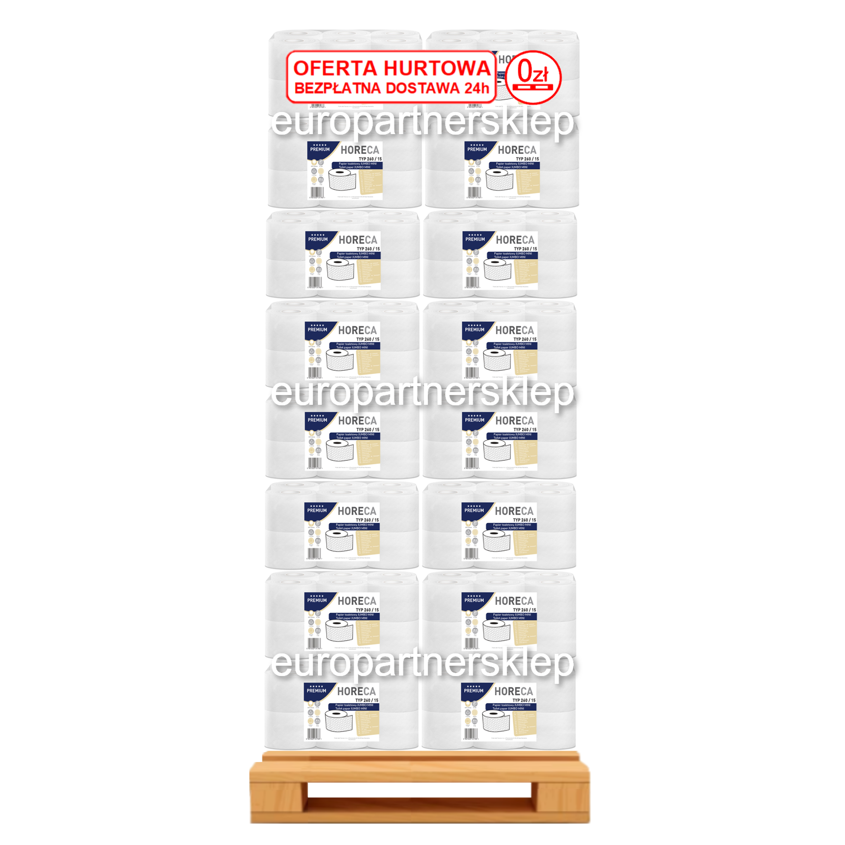 Papier toaletowy Horeca Premium Jumbo Mini 40 opak (półpaleta) a'12 biały (28m) 3-war *celuloza TYP 260/15