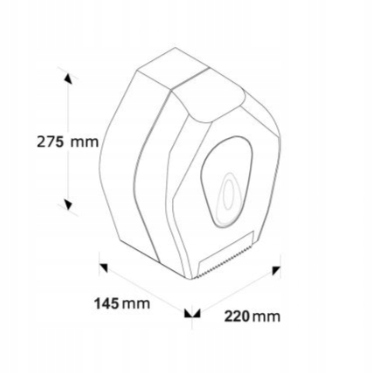 Pojemnik wykonany z białego tworzywa ABS. Posiada ozdobne okienko w kolorze niebieskim, które umożliwia kontrolę ilości papieru w pojemniku. Można w nim stosować papier o maksymalnej średnicy roli 19 cm. Pojemnik zamykany na kluczyk.