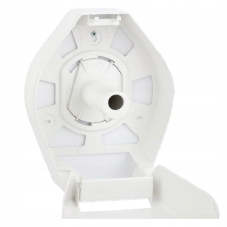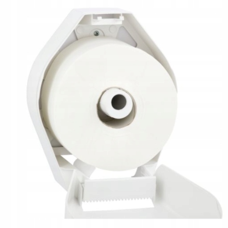 Pojemnik wykonany z białego tworzywa ABS. Posiada ozdobne okienko w kolorze szarym, które umożliwia kontrolę ilości papieru w pojemniku. Można w nim stosować papier o maksymalnej średnicy roli 19 cm. Pojemnik zamykany na kluczyk.