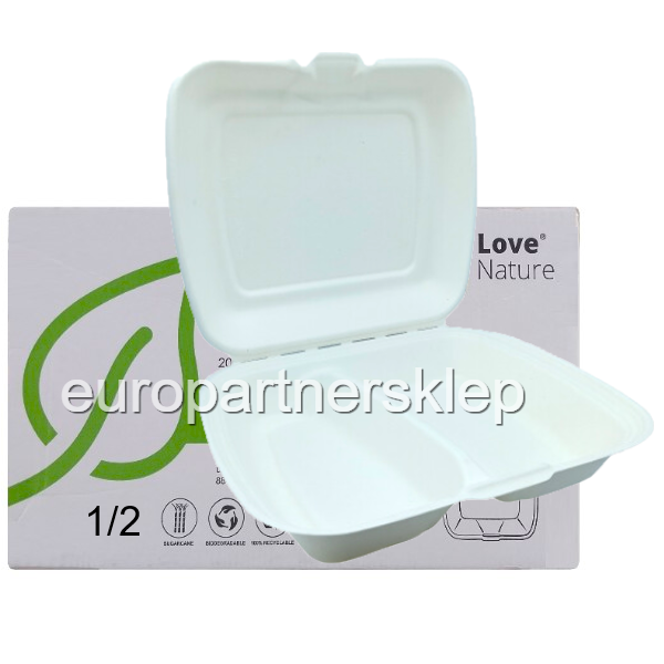 Pojemnik obiadowy na wynos 2-KOM a'200 MENU BOX biały LOVE Nature z trzciny *29938