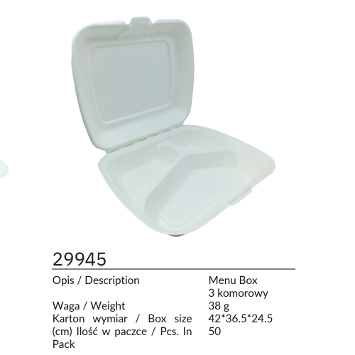 Pojemnik obiadowy na wynos 2-KOM a'50 MENU BOX biały LOVE Nature z trzciny *29938