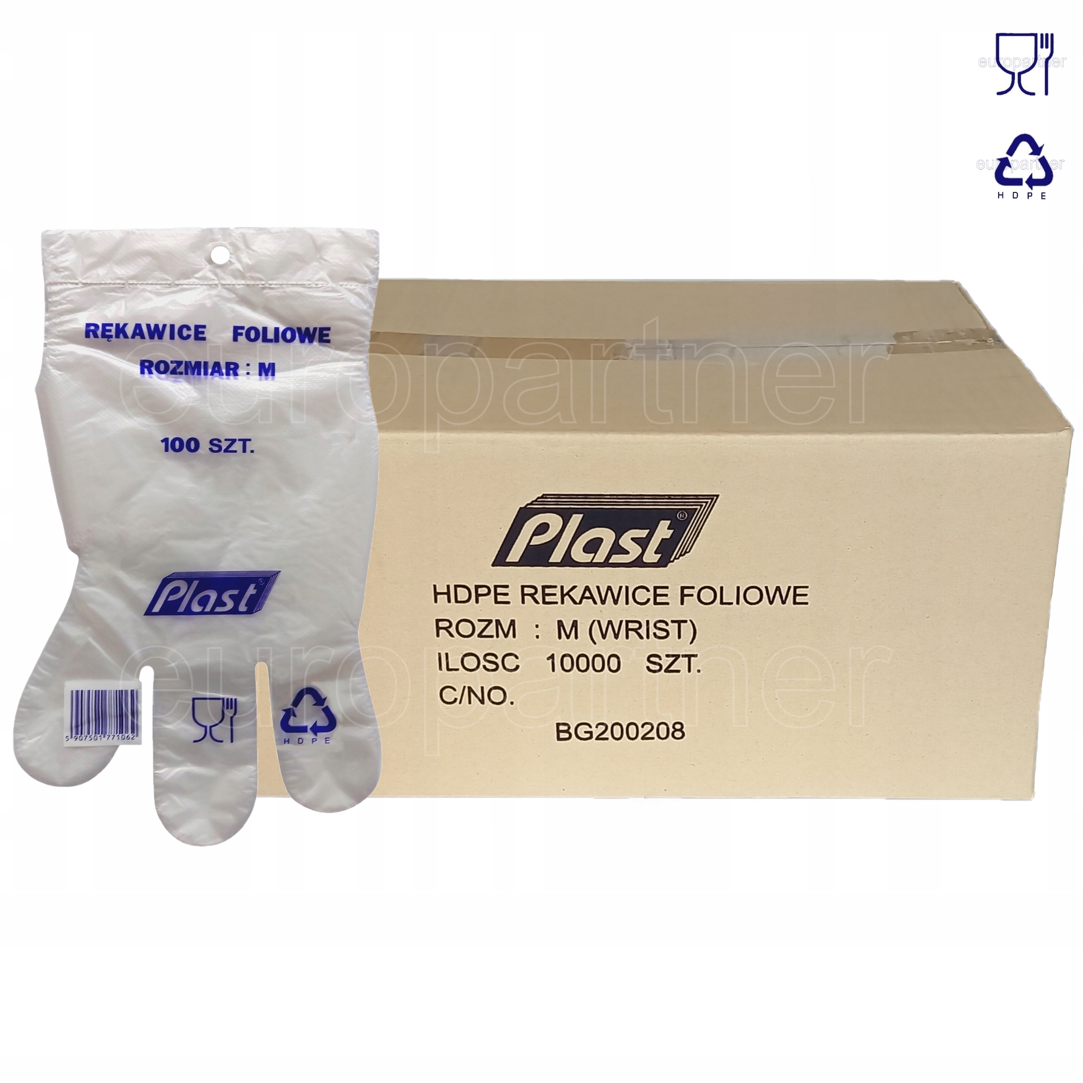 Rękawice foliowe Plast a'100 rozmiar M' 36 opak (półpaleta) rękawiczki jednorazowe hdpe