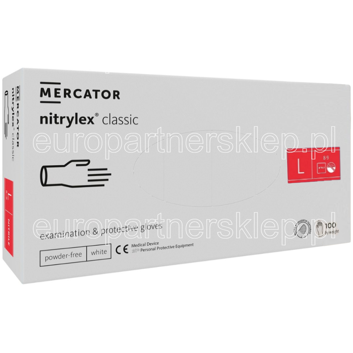 Rękawice nitrylowe białe white a'1000 rozm. L' Rękawiczki Mercator nitrylex