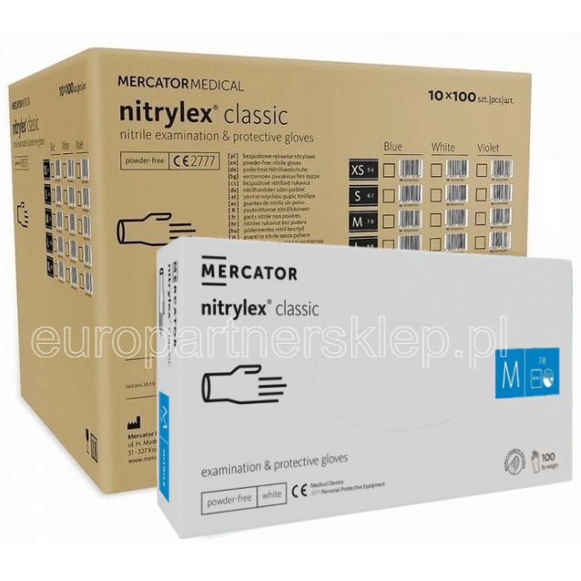 Rękawice nitrylowe białe white a'1000 rozm. M' Rękawiczki Mercator nitrylex