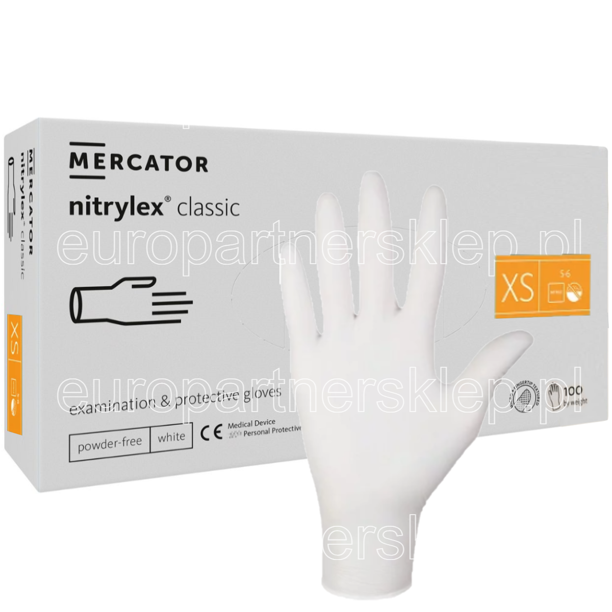 Rękawice nitrylowe białe white a'1000 rozm. XS' Rękawiczki Mercator nitrylex