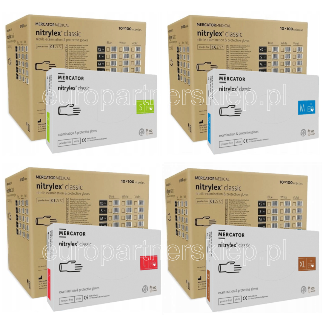 Opis Rękawice NITRYLOWE Rękawiczki białe|white a'100 XS' Opis RĘKAWICE RĘKAWICZKI NITRYLOWE a'100 białe XS' nitrylex® classic to najwyższej jakości klasyczne medyczne bezpudrowe rękawice nitrylowe Najbardziej klasyczne rękawice nitrylowe w ofercie Mercator Medical. Chwytne i niekrępujące ruchów dłoni. Rękawice nitrylex® classic to podstawowe rękawice w kategorii III. Do kategorii III rękawic nitrylowych zalicza się rękawice o odporności na przenikanie mikroorganizmów, grzybów i bakterii, oraz niektórych substancji opisanych w normie. Pozwala to na wszechstronne użycie rękawic nitrylowych nitrylex® classic. Rękawiczki nitrylex® classic można używać podczas kontaktu z żywnością oraz podczas prac domowych i przydomowych. Pakowane po 100 sztuk. Rękawice nitrylex® classic to klasyczna ochrona Twoich dłoni. Te rękawice sprawdzą się świetnie w takich czynnościach jak: Ogólne zastosowanie diagnostyczno-medyczne, opieka pielęgniarska, procedury mycia i dezynfekcji, karmienie pacjenta, sprzątanie, praca laboratoryjna, Pracownicy branży stomatologicznej, beauty oraz weterynaryjnej, salony kosmetyczne i salony tatuażu, branża HoReCa, prace porządkowe, kontakt z wybranymi substancjami chemicznymi i chemią gospodarczą, prace ogrodowe, przetwórstwo spożywcze, cukiernictwo, DIY, malowanie ścian/przedmiotów. Dlaczego warto kupić rękawice nitrylex® classic? Nie zawierają protein, dzięki czemu są bezpieczne dla osób uczulonych na lateks, stanowią doskonałą barierę dla wybranych substancji chemicznych, mikrotekstura z dodatkową teksturą na końcach palców ułatwiająca chwyt. Specyfikacja Typ:medyczno - ochronny Hover me VAT:8% Surowiec:nitryl Kolor: biały Kształt:uniwersalny Ilość w pudełku:100 szt. Ilość w kartonie zbiorczym:10 op. x 100 szt. Powierzchnia zewnętrzna:tekstura na końcach palców Powierzchnia wewnętrzna:bezpudrowa - polimeryzowana Hover me Poziom szczelności AQL:1.5 Jałowość:niejałowy Marka:nitrylex® Klasa produktu:standardowy Hover me Kategoria/typ ochrony:III Klasa medyczna:I Kategoria produktu:diagnostyczne i ochronne Mankiet:rolowany Grubość:rękawice standardowe Odpowiedni dla wrażliwej skóry:tak, rękawice nielateksowe Zgodność z normami:EN ISO 15223-1, EN 1041, Rozporządzenie (UE) 2017/745, EN 1041 , EN 16523-1 , EN ISO 374-1 , EN ISO 374-2 , EN ISO 374-4 , EN 420 , EN 455(1-4) , EN ISO 13485:2016, EN ISO 374-5