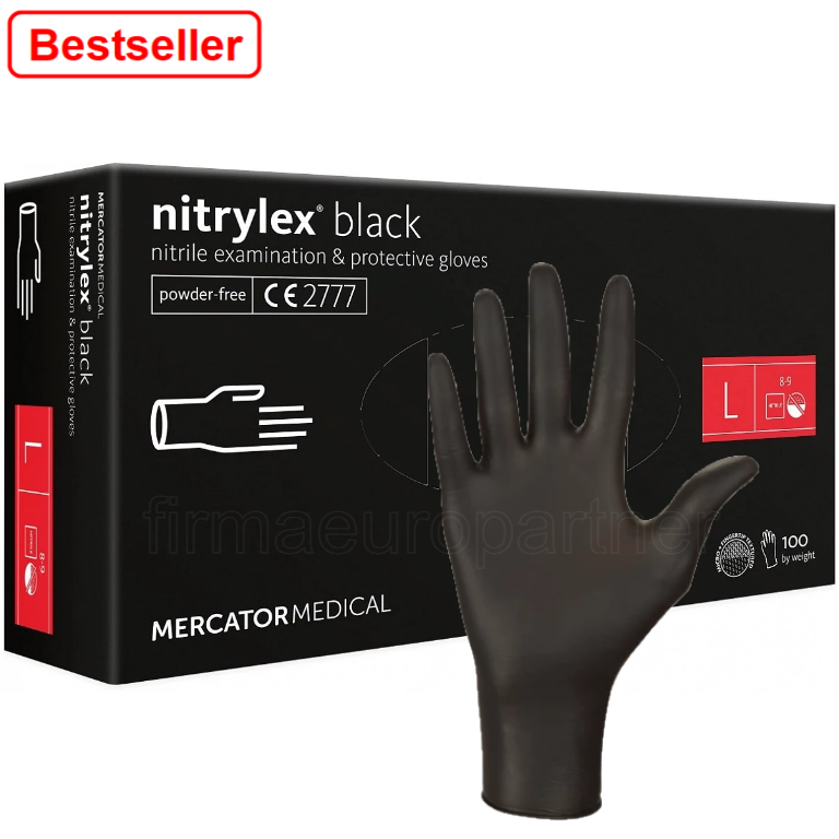 Rękawice nitrylowe czarne black a'100 rozm. L' Rękawiczki Mercator nitrylex