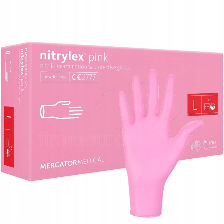 Rękawice nitrylowe pink różowe a'1000 rozm. L' Rękawiczki Mercator nitrylex