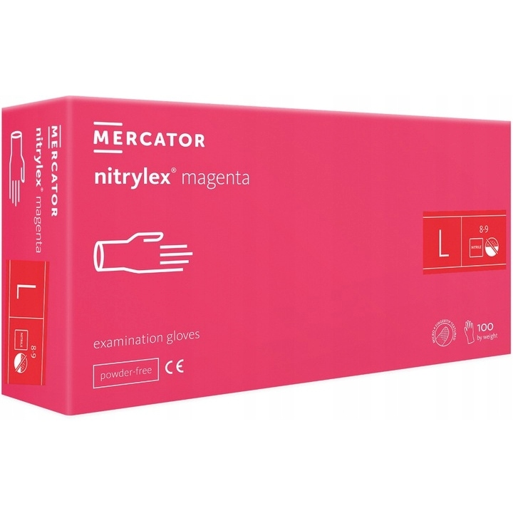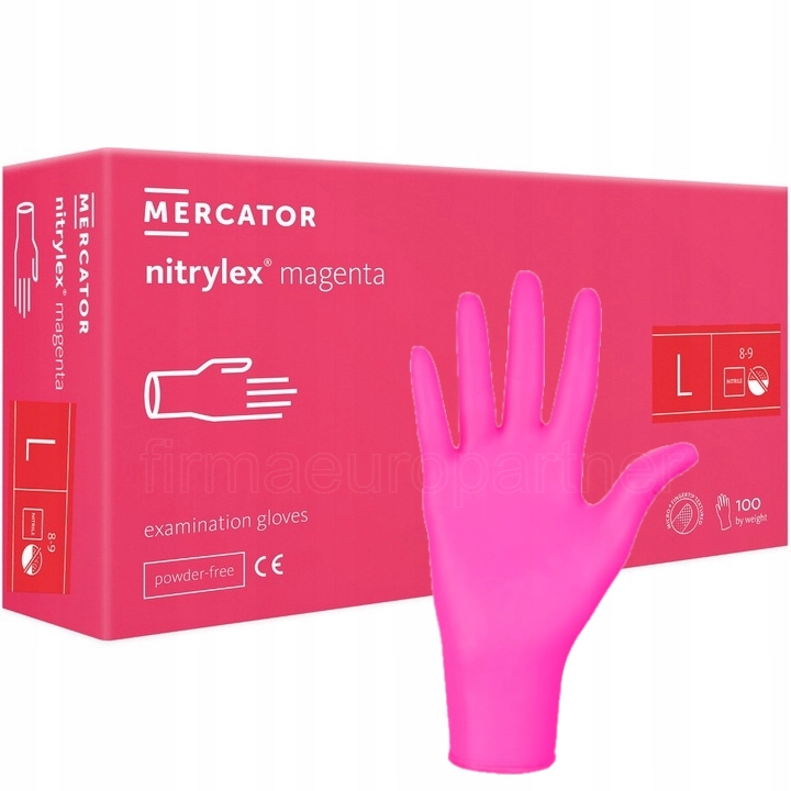 Rękawice nitrylowe róż magenta a'1000 rozm. L' Rękawiczki Mercator nitrylex