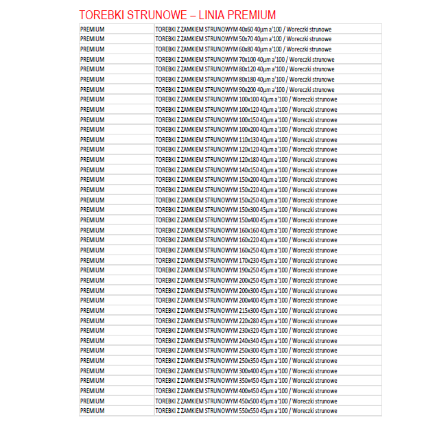 Torebki strunowe, woreczki z zamkiem strunowym Plast Premium!